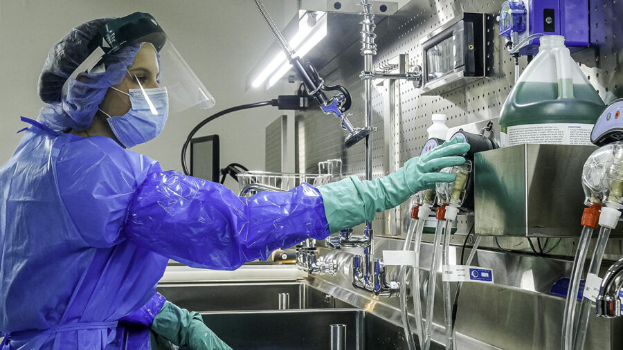 The FlexiPump Independent Flushing System helps assure copious flushing of internal device channels and lumens during pre-cleaning.